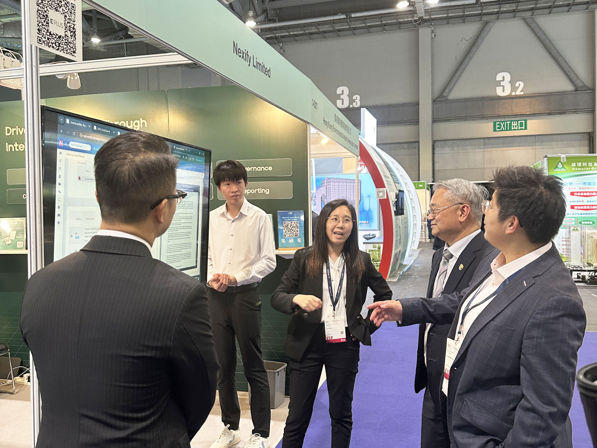 ECO Expo Asia 2025 was successfully held from Oct 28 to 31. At this year’s exhibition, themed “Green Innovations for Carbon Neutrality” marks a new era in the green economy where sustainable development is at the heart of corporate governance. As an exhibitor, we were happy to showcase our innovative solution: The ESG Vetting Platform – NEXTORE AI. We were also honored to have the opportunity to introduce this solution to the Director and Deputy Director of the Environmental Protection Department.